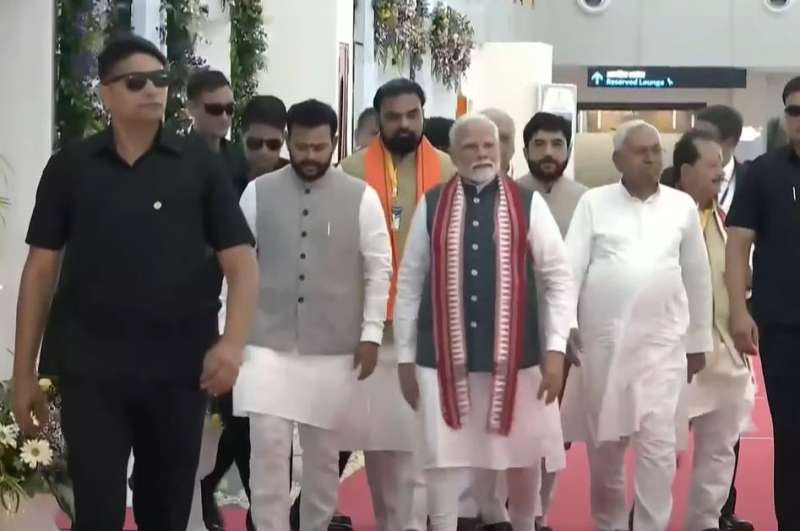 पटना: प्रधानमंत्री नरेंद्र मोदी ऑपरेशन सिंदूर के बाद दो दिवसीय दौरे पर बिहार पहुंचे हैं. पटना एयरपोर्ट पर राज्यपाल आरिफ मोहम्मद खान और मुख्यमंत्री नीतीश कुमार समेत नीतीश कैबिनेट के मंत्रियों ने प्रधानमंत्री मोदी का स्वागत किया. प्रधानमंत्री नरेंद्र एयरपोर्ट से सीधे पटना एयरपोर्ट के नए टर्मिनल भवन पहुंचेंगे और पटना एयरपोर्ट के नए टर्मिनल भवन का उद्घाटन करेंगे. इसके साथ ही पीएम बिहटा एयरपोर्ट का शिलान्यास भी करेंगे. इसके बाद प्रधानमंत्री का रोड शो शुरू हो जाएगा. रोड शो के बाद प्रधानमंत्री बिहार बीजेपी कार्यालय पहुंचेंगे. करीब एक घंटे तक प्रधानमंत्री बीजेपी कार्यालय में ही रुकेंगे.